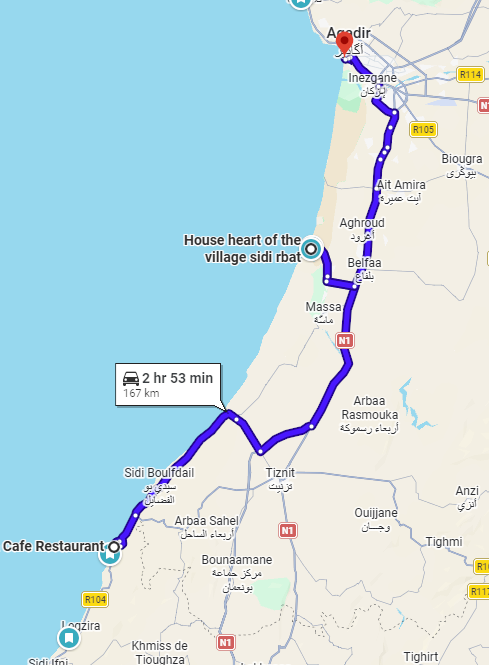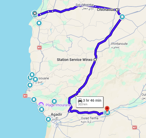 - Mýto: Chichaou → Agadir (51 MAD)